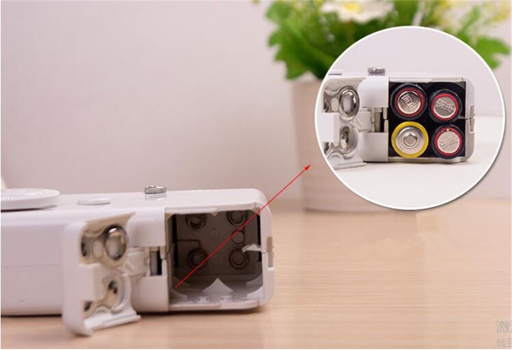 Nuestra máquina de coser necesita 4 pilas AA (atención: 4 pilas AA no incluidas en el paquete), solo pulsa el botón, ¡listo! Puedes crear tus propios pañuelos, delantales, guantes.