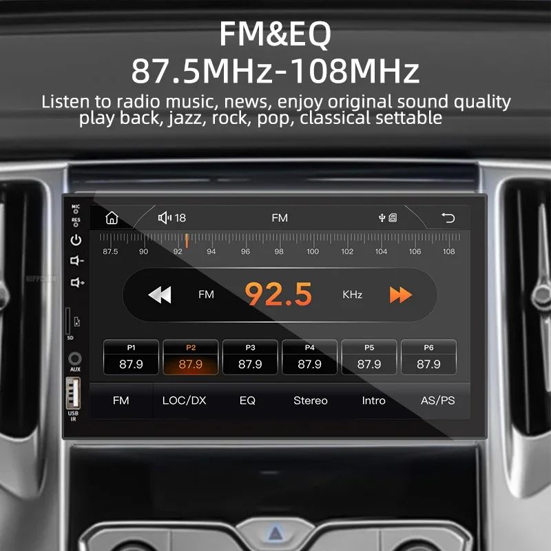 La calidad de sonido también está cuidada: dispone de ecualizador ajustable para adaptar graves, medios y agudos a tu gusto. Podrás elegir modos como rock, pop, jazz o clásico y guardar tus emisoras preferidas en la radio FM de 87.5 a 108 MHz. Por otro lado, esta Radio de coche 1 din permite controlar el volumen, pasar de pista y contestar llamadas directamente desde la pantalla o desde el mando del volante (si tu vehículo lo permite), lo que te ayuda a mantener la vista en la carretera.