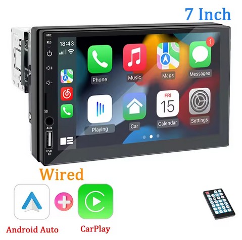 Radio de coche 1 din con Bluetooth, CarPlay y Android Auto, pantalla táctil y cámara trasera opcional para conducir más cómodo y seguro.
