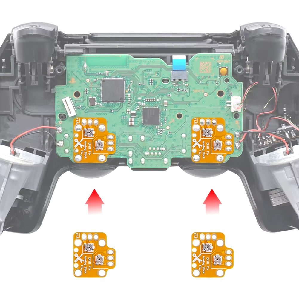 El Drift Stick Fix resuelve este problema de una manera bastante novedosa al colocar un par de piezas ajustables en la placa de circuito del controlador.